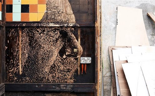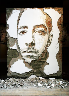 Muchos ya conoceréis la obra de este monstruo del street art portugués Alexandre Farto aka Vhils. Su técnica se basa en la destrucción por capas de paredes sacando a la luz, con la propia textura de la pared, un mundo lleno de caras de personajes en gran formato... Más vale una (o varias) imágenes que mil palabras, mirad las fotos de este post y entenderéis de qué va la cosa. Impresionante!
